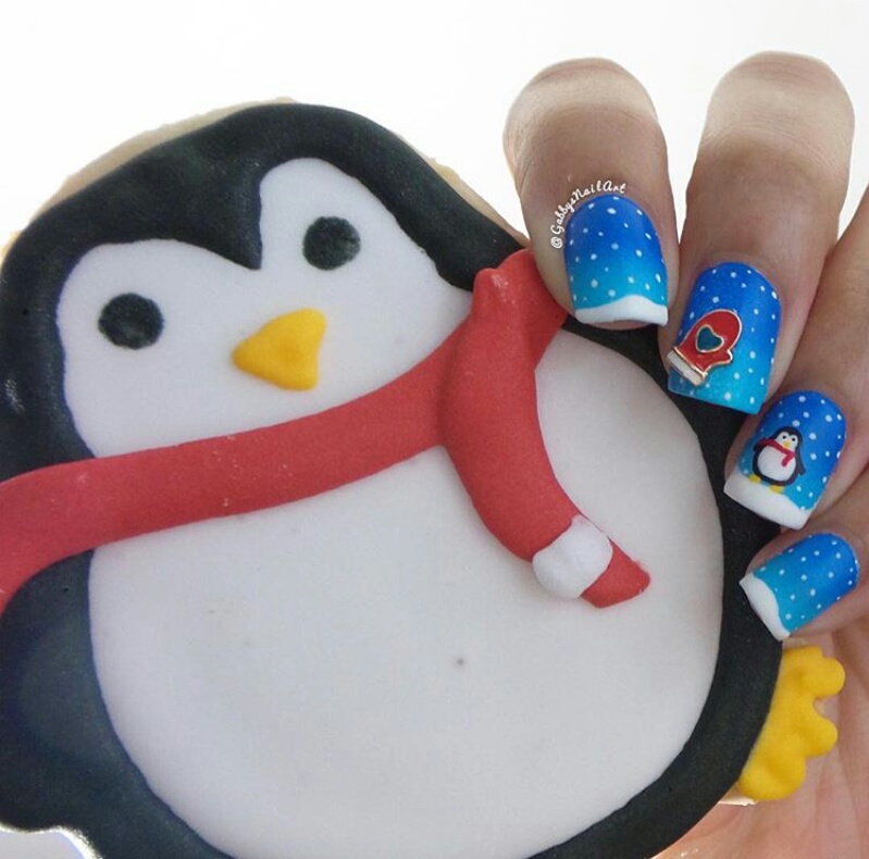 Yang aku paling suka nail art design yang pertama, warnanya didominasi biru dongker, ada gambar pohon Natal dan saljunya juga:) How about you girls?