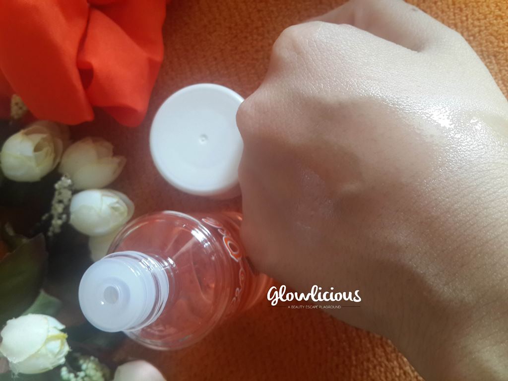 Bertekstur liquid oil dan memiliki warna light orange dengan aroma bunga yang bisa bikin rileks dan tidak lengket
