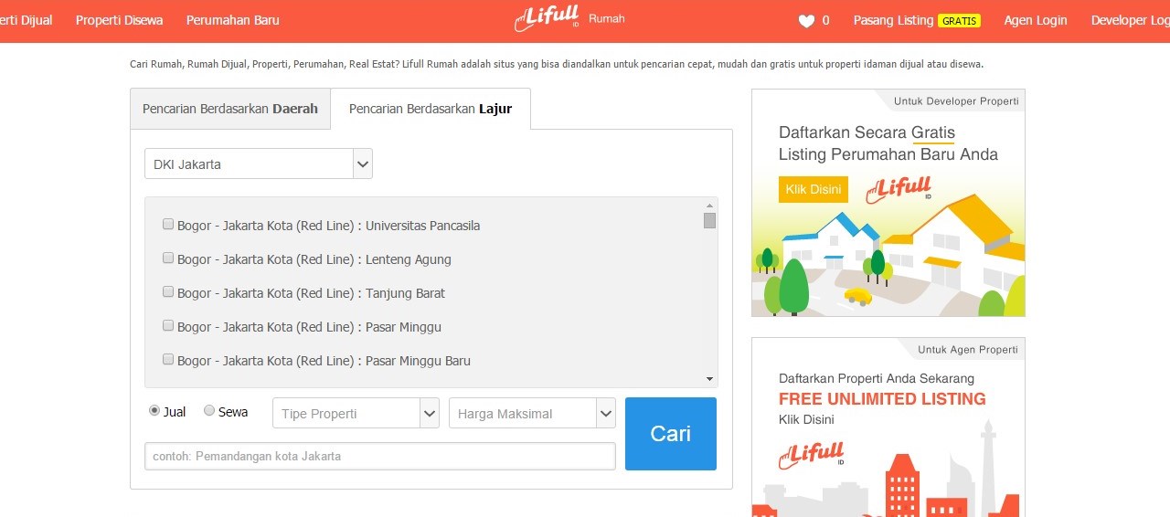 2. Cari Properti Dijual Berdasarkan Lajur Transportasi