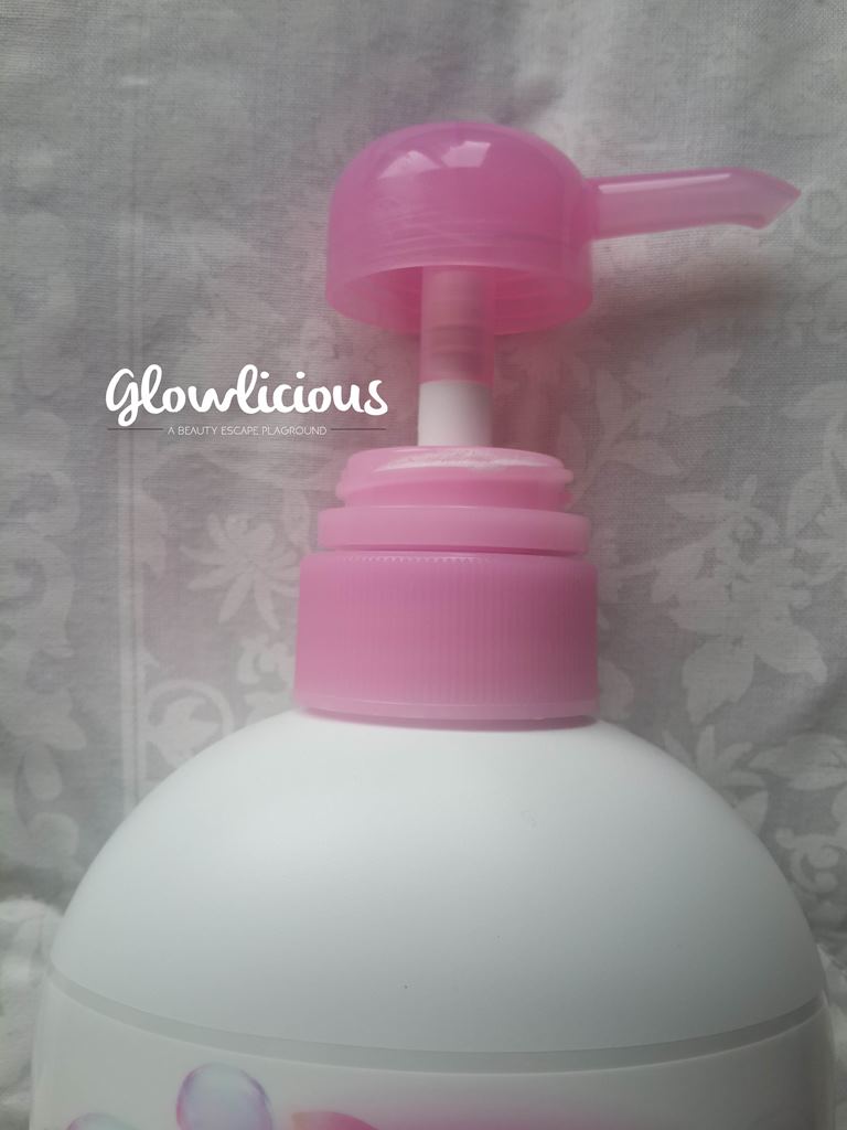 Dikemas dalam botol plastik putih (yang lumayan besar dengan volume 580ml), dengan gambar bunga di bagian depannya. Disertai tutup berupa pump yang memudahkan kita dalam pemakaiannya. Memang keterangan yang tercantum pada botolnya menggunakan bahasa Jepang, loh? No worries guys, sudah ada stiker petunjuk bahasa Indonesianya juga yang sengaja ditempel pada botol.