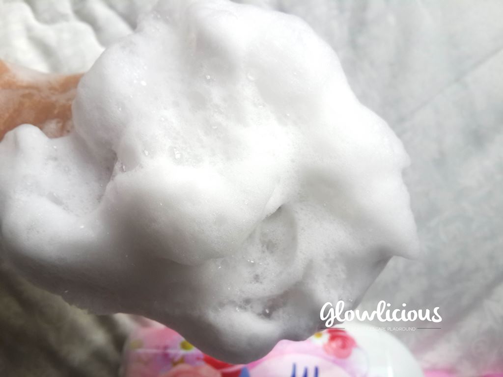 Milky Body Soap ini berwarna putih, dengan tekstur yang sedikit encer. Aku pikir dengan tekstur encer seperti ini, engga bakal bisa produce banyak busa. Ternyata aku salah, busanya buanyak euy. Ditambah lagi memiliki wangi bunga yang soft. Mmmmh harum!