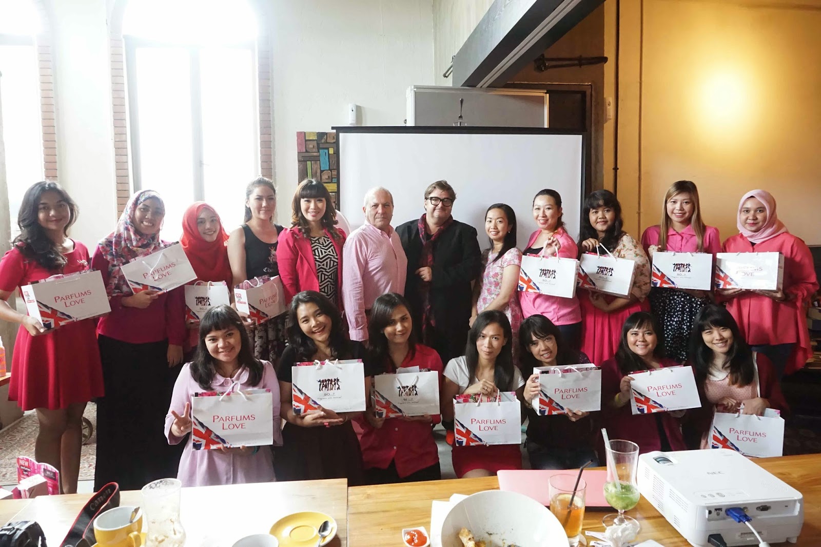 Ini adalah teman – teman yang berhasil menebak aroma parfum, sedang menerima gift dari Mr. Barrie Bell.