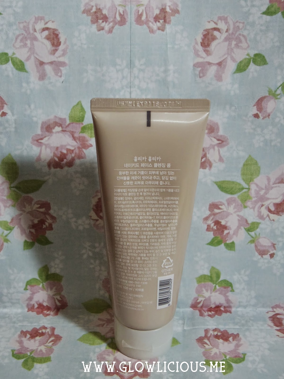 Pada bagian depan packaging tertulis NAKED FACE Cleansing Foam Holika Holika. Sedangkan pada bagian belakang packaging…tada… terdapat tulisan Korea yang aku nggak ngerti sama sekali. Tapi tenang dulu teman – teman, aku minta adik teman aku terjemahin sedikit hihi. Jadi Holika Holika Naked Face Cleansing Foam ini sangat efektif untuk membuang sel – sel kulit mati yang sudah tua dan juga dapat melembabkan kulit. Mungkin karena itu ya nama produknya “Naked Face”, jadi walaupun tanpa makeup, wajah tetap terlihat cantik.