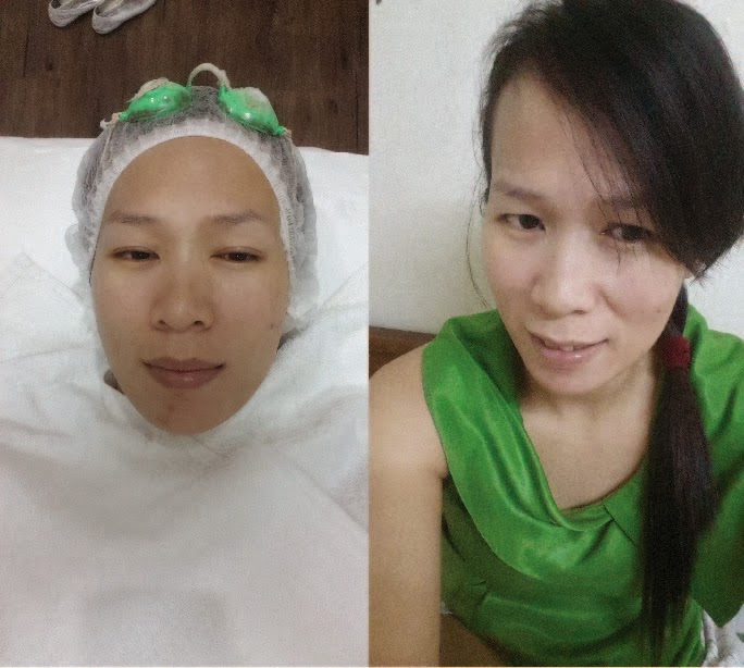 Setelah Mba Aesthetic Consultant membersihkan tangannya, kemudian mulai membersihkan daerah kulit wajahku yang masih dipenuhi makeup dimulai dengan susu pembersih, sabun, dibilas dan akhirnya dikeringkan dengan tissue dan aku merasa rileks banget:)
