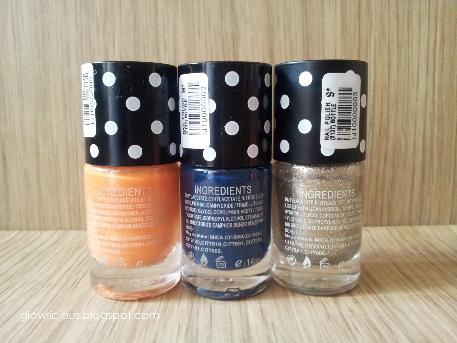 Holla Girls, sekitar 2 bulan yang lalu, aku jalan - jalan ke salah satu mall yang ada tempat bermain anak, biasalah emak - emak nemenin si kecil bermain setelah pulang sekolah. Setelah kelar bermain, aku ajak Glow, my lovely daughter nemeninnya mamanya just for window shopping:D Akhirnya mampir ke salah satu toko aksesoris yang sudah hampir ada di mall seluruh jakarta. Langsung mataku tertuju pada nail polish aka cat kuku aka kutek yang warna-warnanya membuat mata susah berpaling*lebayyy Sebenarnya aku tidak terlalu sering menggunakan nail polish, tapi sudah tekad kalo anakku sudah agak gede mau lebih lebih lebih jadi wanita lagi*apa coba?? Langsung deh aku pilih beberapa warna yang menurut aku bisa dipakai buat sehari - hari, belinya cuma 3 yaitu warna orang, biru dan silver metalic, mau coba dulu bakalan abis atau ga soalnya aku suka banget belanja tapi pada akhirnya kadaluwarsa karna malas atau kelupaan menggunakannya*tepok jidat COLOR : ORANGE, BLUE, SILVER METALLIC ingredients INGREDIENTS : Butylacetate | Ethylacetate | Nitrocellu Lose | Phtalicanhydride / Trimelliticanhyfride / Glycol Copoymer | Acetyl Tribu | Tylcitrate, | Isopropylalcohol | Stearalko | Niu Mhe Ctorite | Camphor | Benzo Benzophenone-1 3 colors applied Blue Orange Silver Metallic Silver Metallic OVERALL LOOK EVER NAIL POLISH HARGA : Rp. 9.000 NET : 14ml Pro(s) : (+) Packaging yang cute dan menarik (+) Mudah didapat, hampir di setiap mall pasti ada (+) Tersedia dalam banyak cheerful colors (+) Cheap Con(s) : (-) Hanya dapat bertahan 1-2 hari, itu juga klo sering menyentuh air bisa lebih cepat lenyap cat kukunya (-) Pengaplikasiannya harus berulang - ulang untuk mendapatkan warna yang bagus (-) The smells lil bit "menyengat" Jadi aku bakalan repurhace buat kalo lagi iseng :) Bagaimana dengan kamu, uda pada coba juga ya?