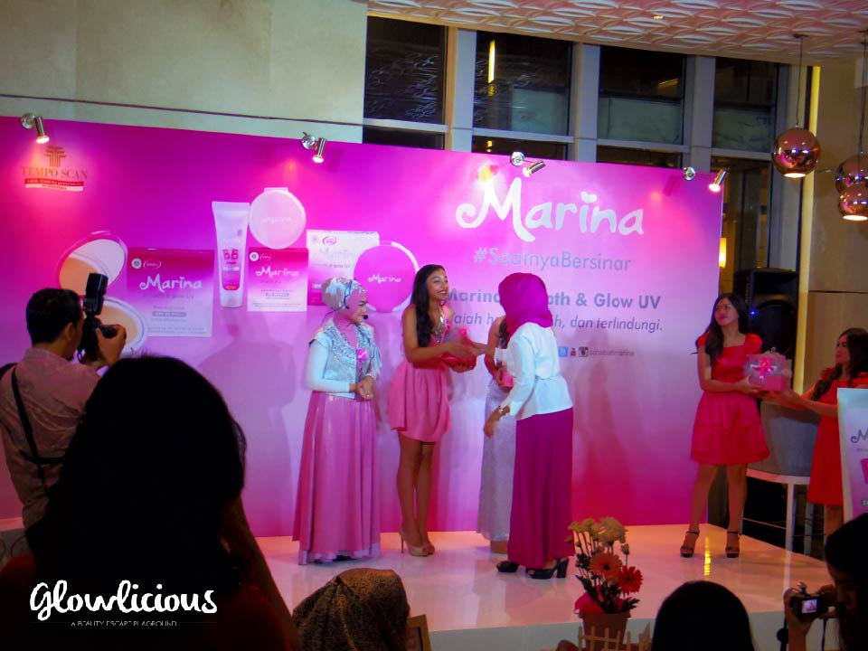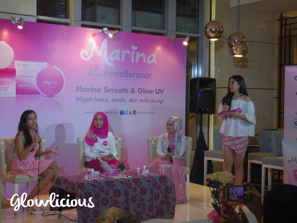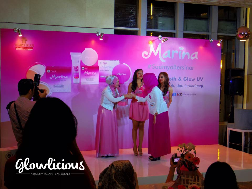 Selain dihadiri rekan media dan blogger, acara ini juga dihadiri oleh Ibu Nina M. Yunianto (Marketing Director Marina), Irish Bella (Endorser) dan Nadia Soekarno (Bintang Iklan dan Model) dan Make Up Artist Vizzily Vizzya.