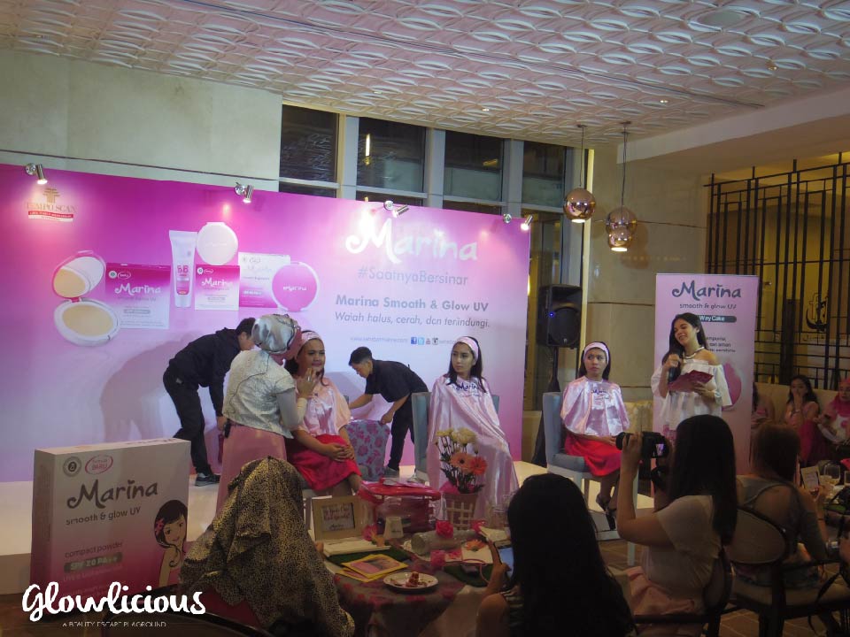 Acara kemudian dilanjutkan dengan Mini Makeup Demo oleh Make Up Artist Vizzily Vizzya dengan menggunakan rangkaian basic makeup Marina Smooth & Glow UV.