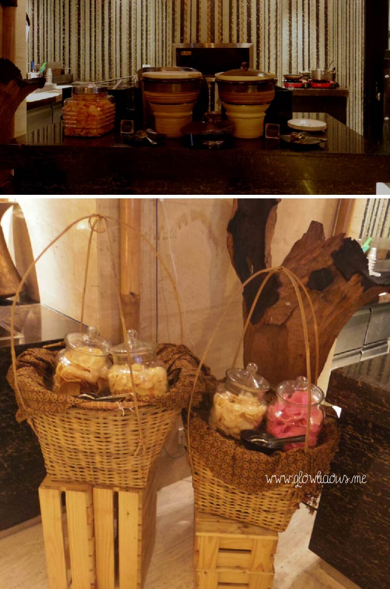 Kemudian memasuki area depan Signature Restaurant, langsung berasa Indonesia banget. Terdapat beberapa ornamen budaya khas Bali menghiasi jalan masuk ke restoran. Staff receptionist menyapa dengan ramah dan kemudian mengantar aku beserta teman blogger lainnya ke meja yang telah disediakan.