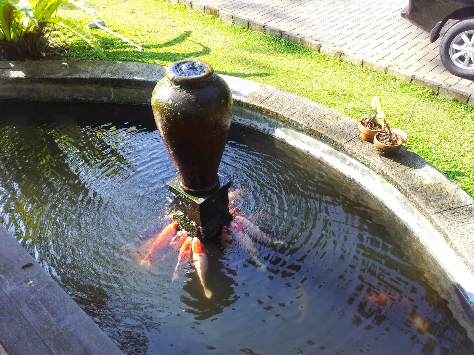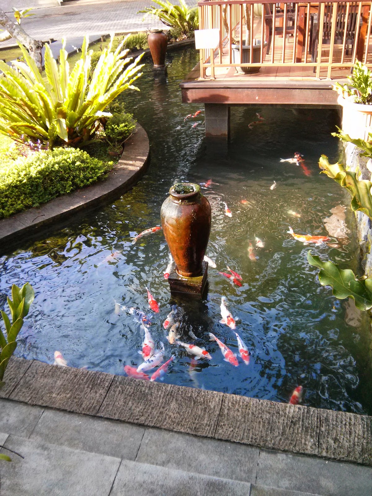 Terdapat kolam ikan persis di depan cafe dimana kita bisa kasih makan juga, dan anakku happy sekali bisa main sama ikan. So happy, setelah mendapat tempat duduk kita langsung bergegas ambil makanan untuk breakfast masing – masing, sudah pada lapar juga, cape berselfie2an. Menu dari The Grand Hill Bistro Cafe ini terdiri dari 3 macam cuisine yaitu Western, European & Asian jadi kita ada yang ambil sosis, nasi goreng, burger, soto ayam, bubur ayam, roti dan oatmeal buat anakku.