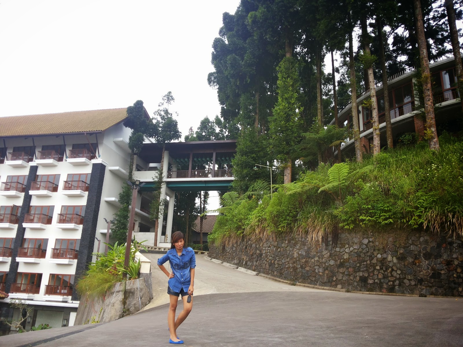 My bais beautiful sister “De Birong” posed in front of The Grand Hill Hotel Puncak.
